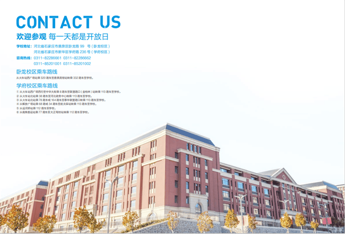 学府校区:0311-85201001,学府校区:0311-85201002,卧龙校区:0311-82286661,卧龙校区:0311-82286662,卧龙校区:0311-82286663